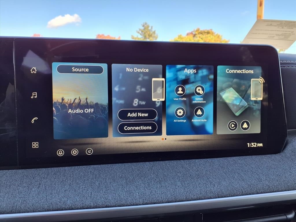 - Radio: AM/FM/SiriusXM Audio System -inc: 12.3" color touchscreen display w/4 speakers, Bluetooth® hands-free phone system, streaming audio via Bluetooth®, NissanConnect featuring wireless Apple CarPlay, wireless Android Auto, Siri eyes free and hands-free text messaging assistant, audio and Bluetooth® steering wheel switches